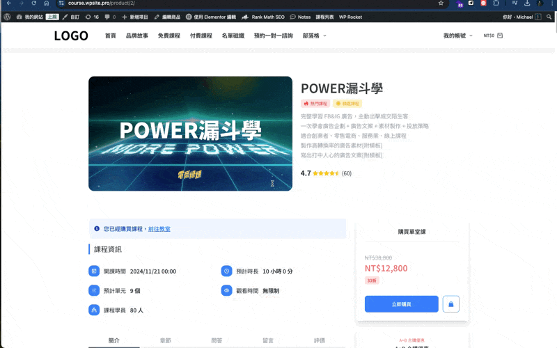 Power Course 線上教學外掛授權